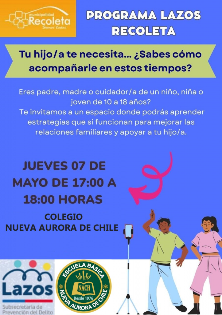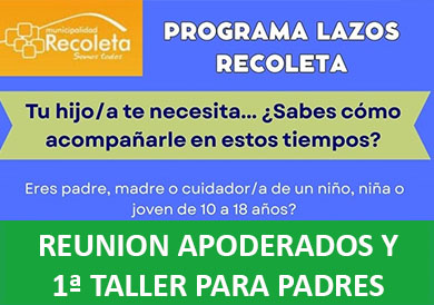 Previo a esta instancia, el mismo día se realizará el primer taller de Escuela para Padres a las 17:00 hrs., el cual será desarrollado por el Programa Lazos de Recoleta, instancia formativa de gran relevancia para fortalecer el acompañamiento familiar en el proceso educativo de nuestros estudiantes.